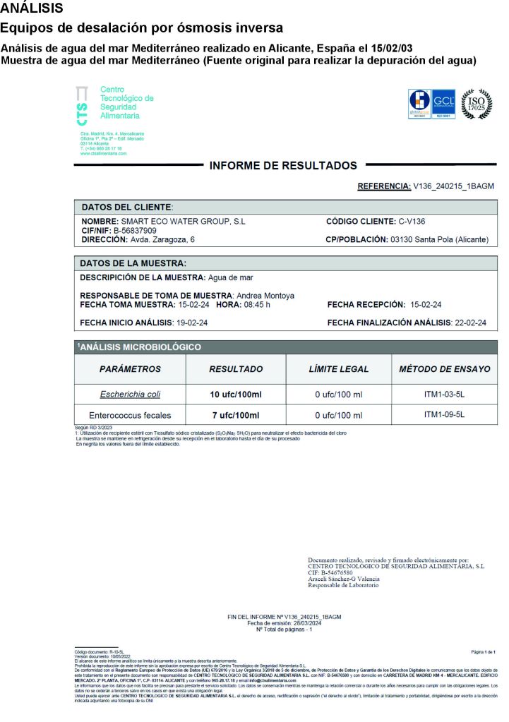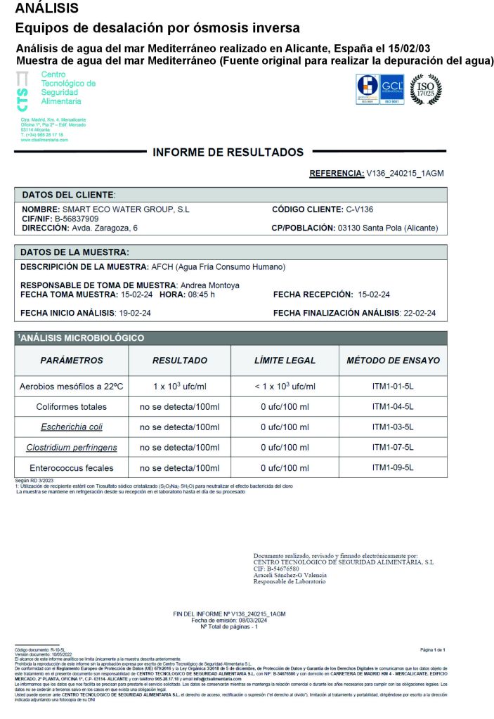 5º- Análisis 2 Agua de mar: https://smartecowater.com/wp-content/uploads/2025/08/5o-2024-02-15_1b-micro-agua-de-mar.pdf
