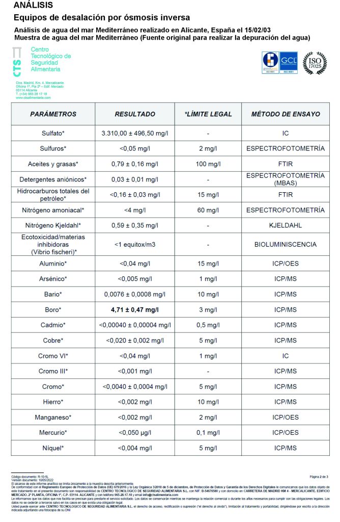 ANALISIS AGUA DE MAR TRATADA OSMOSIS INVERSA – PULSE EL ENLACE PARA VER EL DOCUMENTO